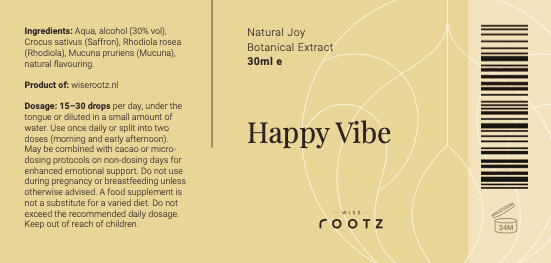 Happy Vibe is een natuurlijke stemmingstinctuur met saffraan, rhodiola en mucuna. Ondersteunt emotionele balans, innerlijke rust en motivatie – zonder synthetische toevoegingen. Perfect in combinatie met cacao of op niet-microdoseerdagen. Inhoud: 30 ml.